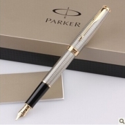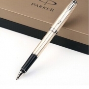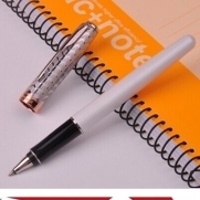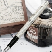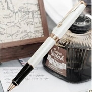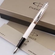 卓爾純銀珍珠白格子紋金夾寶珠筆