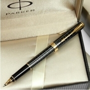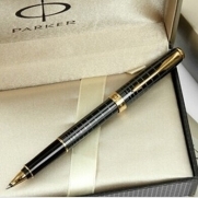 08卓爾純黑麗雅格子紋金夾寶珠筆