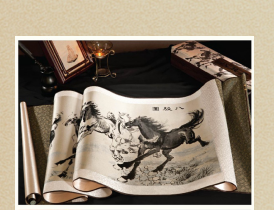 真絲平面織錦,《八駿圖》橫軸畫