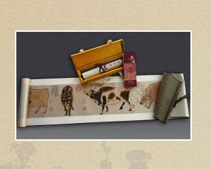 真絲平面織錦《五牛圖》橫軸畫