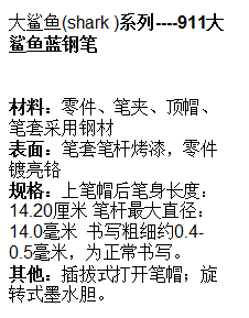 911大鯊魚藍鋼筆>