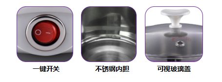 ◎不銹鋼內膽,雙層鍋(guo)體(ti),有效隔熱防燙;