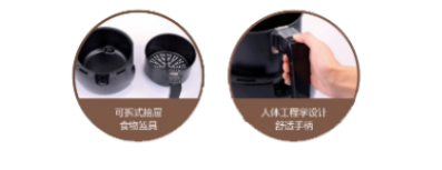 ◎可拆(chai)式抽屜和食物籃具有(you)不粘涂層,清潔(jie)方便(bian)。