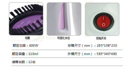 ◎一機多用:熨燙、加濕、蒸臉; ◎快速出蒸汽,軟化衣物纖維,不傷面料; ◎操作簡單,站立熨燙無需彎腰,效果持久; ◎開口式加水設計,加水和清潔更方便; ◎小巧機型節省空間,方便攜帶出差; ◎防干燒、缺(que)水(shui)自動斷電,確保整機安全。