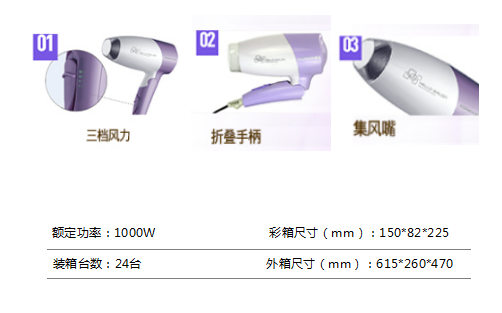 ◎3檔風(feng)力設(she)置,超靜音設(she)計,快速(su)輕松(song)干(gan)發;