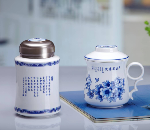 花開富貴.茶漏杯茶葉罐骨瓷兩件套>