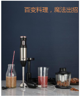 1、915W 強勁極速攪拌效力,攪拌、切碎,輕松搞定; 2、 齊集土豆泥棒、切碎器、打蛋器、攪拌棒,各種準備工作得心應手; 3、 統一收納托盤,特設計電源線孔,使用收納都方便; 4、 主機(ji)頂部調速旋鈕設計,機(ji)身五(wu)金表(biao)面處(chu)理,美觀獨特;