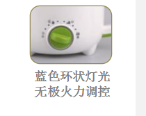 藍色環狀燈光、啟動烹飪進程; 雙層壺體結構、有效防燙; 304不銹鋼容器、環保更健康; 無極(ji)檔(dang)位自由調(diao)控、滿(man)足不同烹(peng)飪需求。