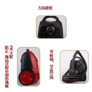 強勁吸力,HF拾塵率>95% 降噪結構及消聲裝置,最大限度減少噪音 輕巧方便,3.5kg小身段 貼心軟質滾輪設計,居家呵護,操控自如 環保(bao)布袋,經濟實用