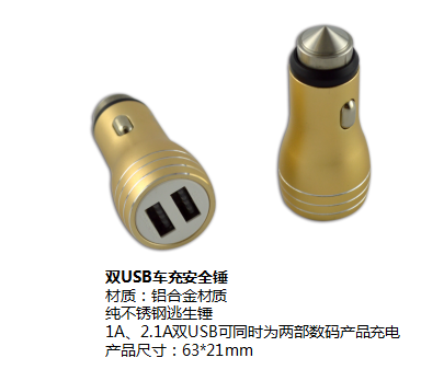 雙USB車充安全錘+真皮汽車鑰匙包>