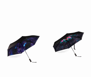 產品材質:400T 30D高密度(du)PG布(bu)、電黑(hei)鋁中棒、全鋁傘骨、包膠(jiao)玻纖傘尾、合金鋼琴烤漆手