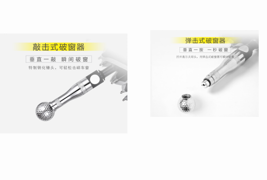 產(chan)品功能:錘擊式破(po)窗(chuang)器(qi)、彈擊式破(po)窗(chuang)器(qi)、反光警示條、半自(zi)動打開(kai)