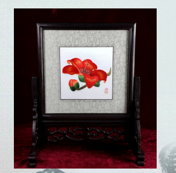 紅棉插架 規格:240*240MM 材料:手工刺繡,背面廣繡金箔介紹(雞翅木支架) 包裝:禮盒 禮品制作:包裝盒絲印企業logo,背面金箔印制個性化圖案 適合禮品贈送,家居(ju)陳列,個人收藏