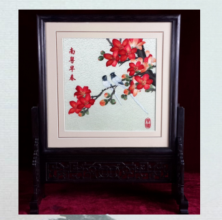 規格:325*325MM 材料:手工刺繡,背面廣繡金箔介紹(雞翅木支架) 工藝說明:亂針滿繡 包裝:禮盒 禮品制作:包裝盒絲印企業logo,背面金箔印制個性化圖案 適合禮品贈送, 家居(ju)陳列,個人(ren)收(shou)藏