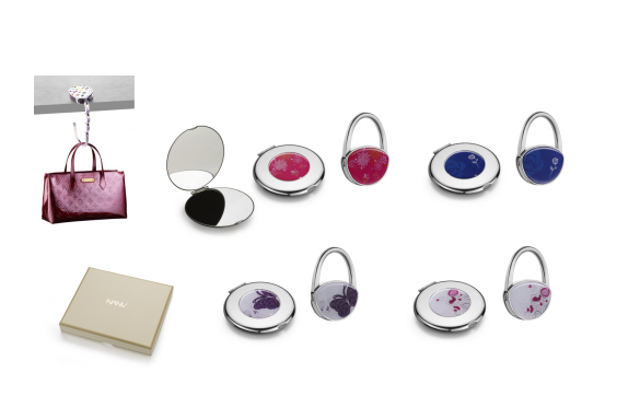 品名:鏡子包包掛套裝 材質:鏡子:不銹鋼+滴膠,包包掛:不銹鋼+滴膠 尺寸:155*130*22mm 說明:可定制(zhi)客戶的logo