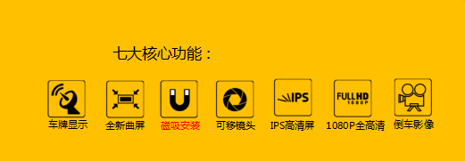 功能詳述: 全玻璃曲面屏設計,無邊框更圓潤細膩 IPS全視角高清屏采用全貼合工藝 攝像頭采用創新型粘貼式,可隨意粘貼在任意位置 全玻鏡頭組支持拍攝1080P全高清專業畫像 可視廣角高達170°,完整記錄不留死角 后置720高清防水鏡,支持倒車影像功能 車牌號碼顯示功能讓每段視頻有據可查 更(geng)簡(jian)易的磁(ci)吸(xi)式安裝,告別綁帶式捆(kun)綁