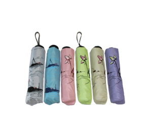 商品名稱:天堂黑膠三折傘 規 格:57cm×8k黑桿黑鋼骨 面料裝飾:黑膠絲印2圖(水墨荷花、船) 裝箱數量:40 支