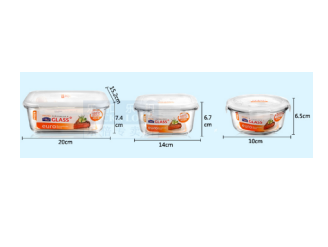 材 質:耐熱玻璃 顏 色:透明 容 量:方型 500ml,方型 1L 圓型 380ml 規 格:140*140*67mm,200*152*74mm ?100*65 mm 包 裝:彩盒包裝 34.5cmX10cmX32cm 裝箱數:4個/箱 產品描述: 四面鎖扣格拉斯 微波爐使用也安全,烤箱也可以烹飪 透明的盒(he)身,更加漂亮美觀