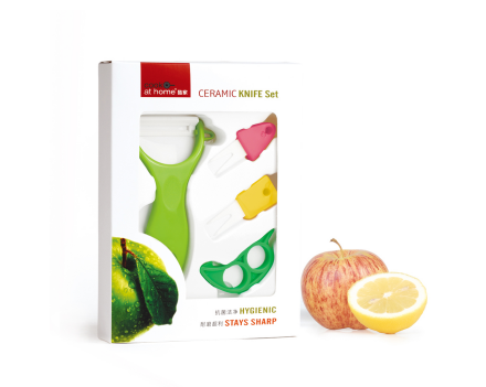 【產品尺寸】 15×20.5×3CM 【裝箱數量】 40 pcs/ctn 【產品材料】 氧化鋯+ABS 產品描述: 陶瓷刨、陶瓷水果叉 2個、剝橙器(qi)、彩盒包裝。