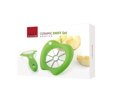 【產品尺寸】 23.5×15.5×4 cm 【裝箱數量】 40 pcs/ctn 【產品材料】 氧化鋯+ABS手柄 產品描述: 蘋果切、陶瓷刨、 彩盒包裝(zhuang)。