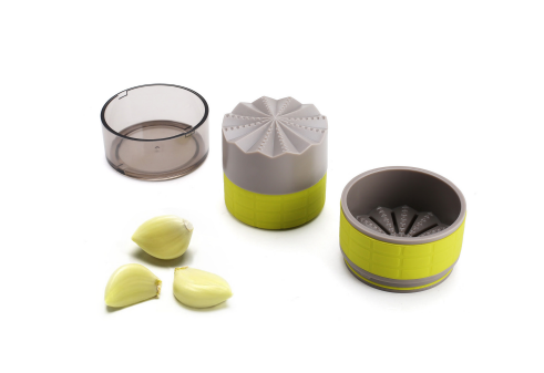 產品說明 (Description) 壓蒜器的設計原理是利用內部齒輪的摩擦搗碎大蒜,蒜汁會直接流入底部槽中,防止搗碎大蒜時手上有大蒜的味道。 硅膠防(fang)滑封套,使雙手舒適(shi)并(bing)加速磨蒜。