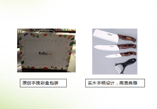 【材質】高級氧化鋯 【大小】6寸菜刀,4寸水果刀,亞克力刀架 【適用范圍】各種蔬果及無骨肉類 【產品規格】彩盒,34*22*10cm 【裝箱(xiang)率】45*35*52cm/10套