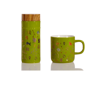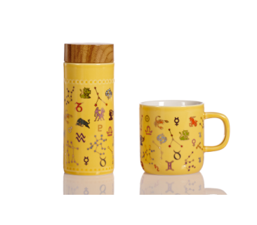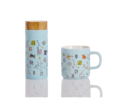 品名:12星座隨身杯(木紋蓋) 釉色:牙白++彩釉貼花 容量:350ml (雙層) 規格:72x72x176mm