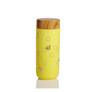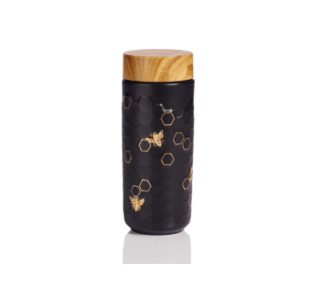 品名:大豐收隨身杯(木紋蓋) 釉色:靜灰+手工描金 容量:350ml (雙層) 規格:72x72x176mm