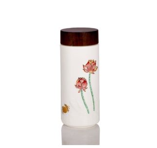 釉色:牙白·彩釉·手工描金 容量:350ml (雙層) 規(gui)格:72x72x182mm