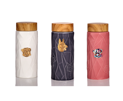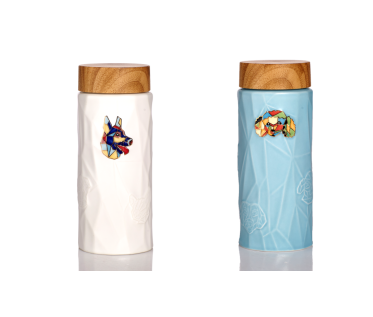 品名:旺福隨身杯(木紋蓋) 釉色:無光水藍+手工描金+彩釉 容量:350ml (雙層) 規格:71x71x175mm