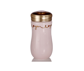 品名:一心一意隨身杯 釉色:中國紅+手工描金+彩釉 容量:380ml (單層) 規格:68X68X163mm