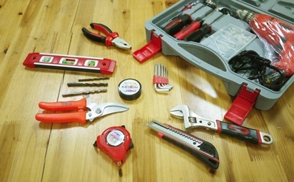 紅色水平(ping)尺(chi)-1PC 0.25KG羊(yang)角錘-1PC 紅色電鉆-1PC 絕緣膠布-1PC 包膠美工刀(dao)-1PC