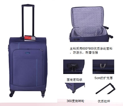 拉桿箱,可(ke)托(tuo)運。主(zhu)料采(cai)用尼龍面料防(fang)潑(po)水,耐磨性強(qiang)。優(you)質的360度旋(xuan)轉輪(lun),可(ke)側拉、平推,大大減輕(qing)了您手臂的壓力。優(you)質拉桿收拉自(zi)如,箱體(ti)自(zi)帶固(gu)定密碼鎖,使用便捷。箱體(ti)有(you)5cm的擴充層(ceng),內部空間大,放置更(geng)多(duo)物(wu)品。是(shi)您出差旅行的好“伴侶(lv)”。友(you)情提示:因此款采用四輪設計,盡(jin)可(ke)(ke)能的(de)平推,既(ji)可(ke)(ke)以(yi)使您的(de)旅行(xing)箱(xiang)輪子壽命(ming)更(geng)久(jiu),又可(ke)(ke)以(yi)節省您的(de)臂力。