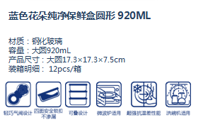 藍色花朵純凈保鮮盒圓形 920ML>