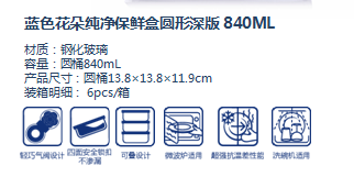 藍色花朵純凈保鮮盒圓形深版 840ML>